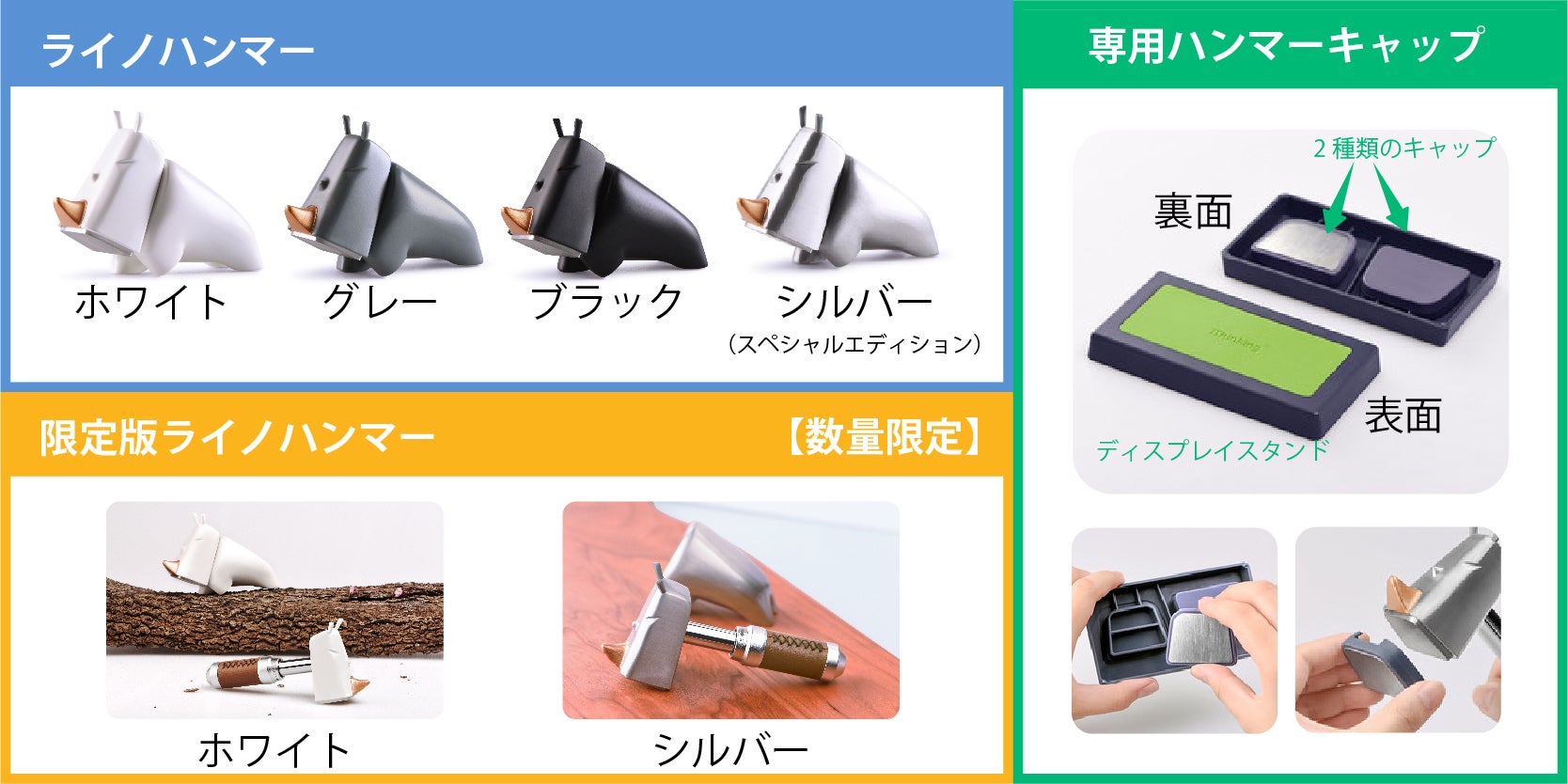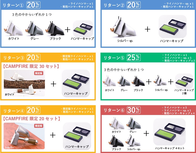 ライノハンマーキャップは、「使うのがもったいない!」というお声から開発されました。「使わないともったいない!」ハンマーキャップを使用して、どんどん活用していきましょう!専用ハンマーキャップは全てのリターンに含まれています。