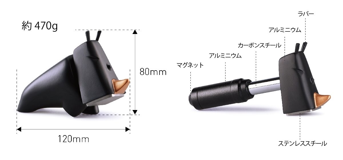 ライノハンマーのサイズは、通常のハンマーよりもはるかに小さく、スタイリッシュな装飾として、家やオフィスでの格納に困りません。