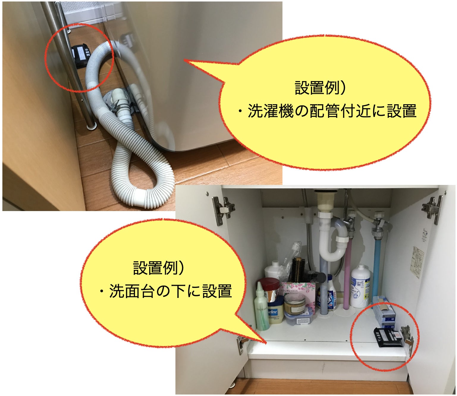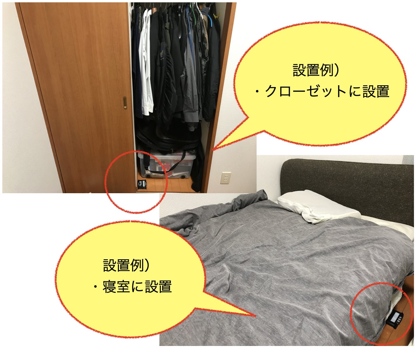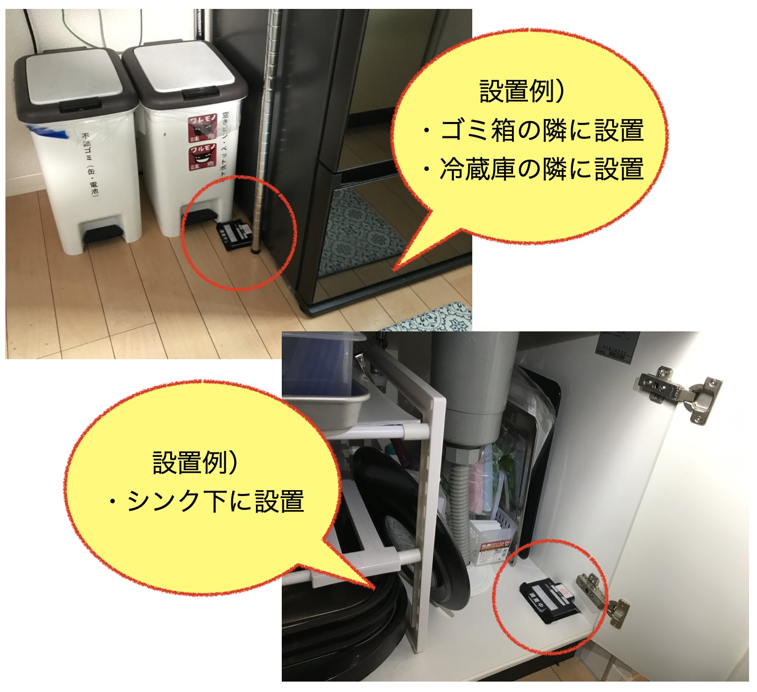 他にもトイレ、子供部屋など気になる箇所へ設置してください。