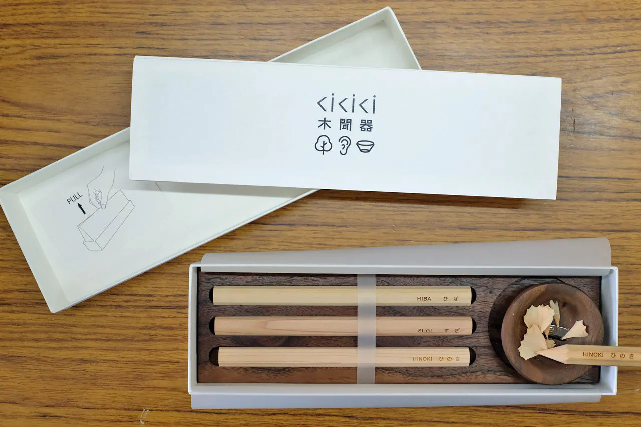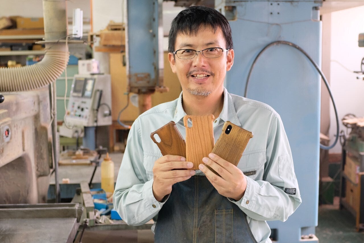 自動車用の木型やiPhoneケースを作る工房では、工場見学に加えて自社製品を使ったワークショップを行います。写真は木の特徴を、削った音と香りで感じる「Ki Ki Ki - 木 聞 器-」