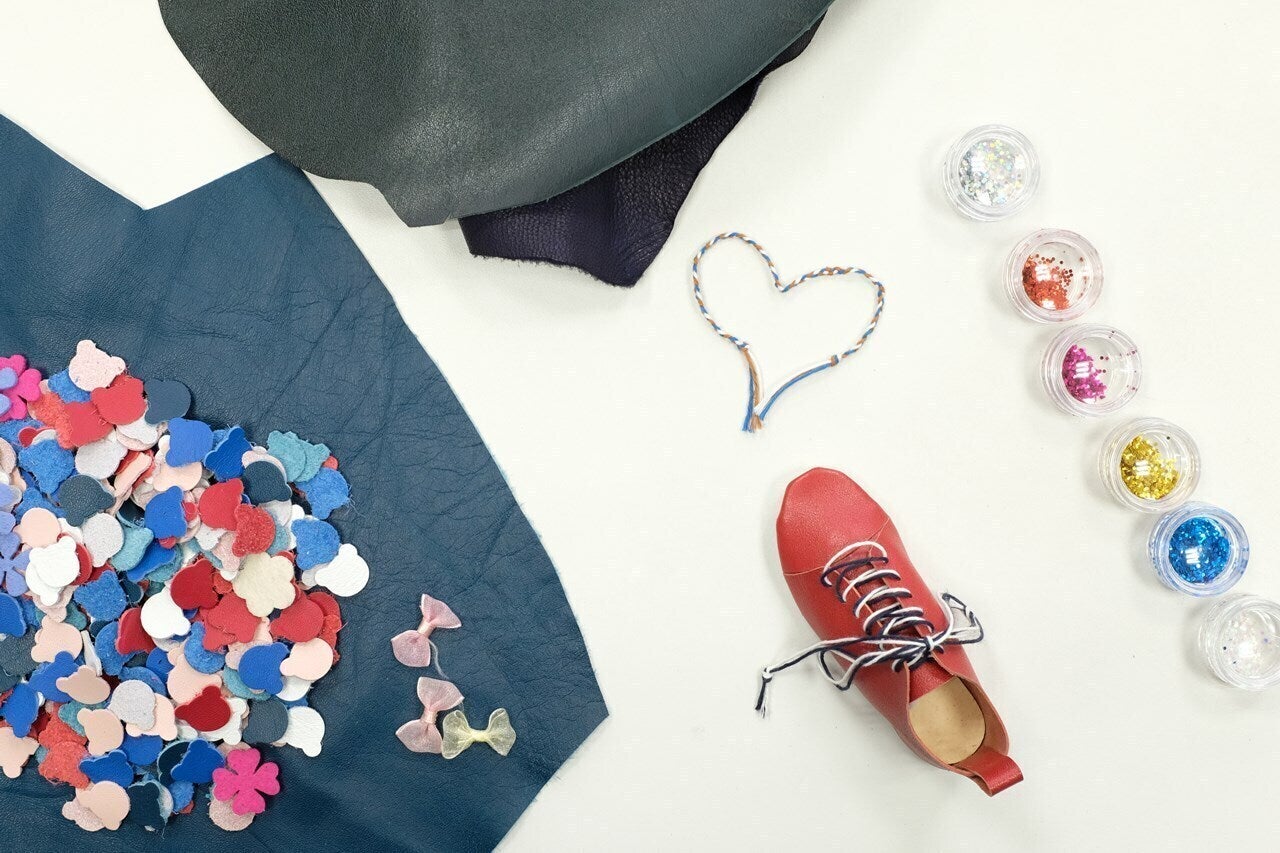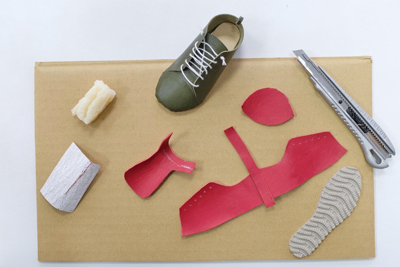 革とゴムを組み合わせたミニチュア靴が作れます。使う革はもちろん本革、ソールも実物と同じゴム素材です。