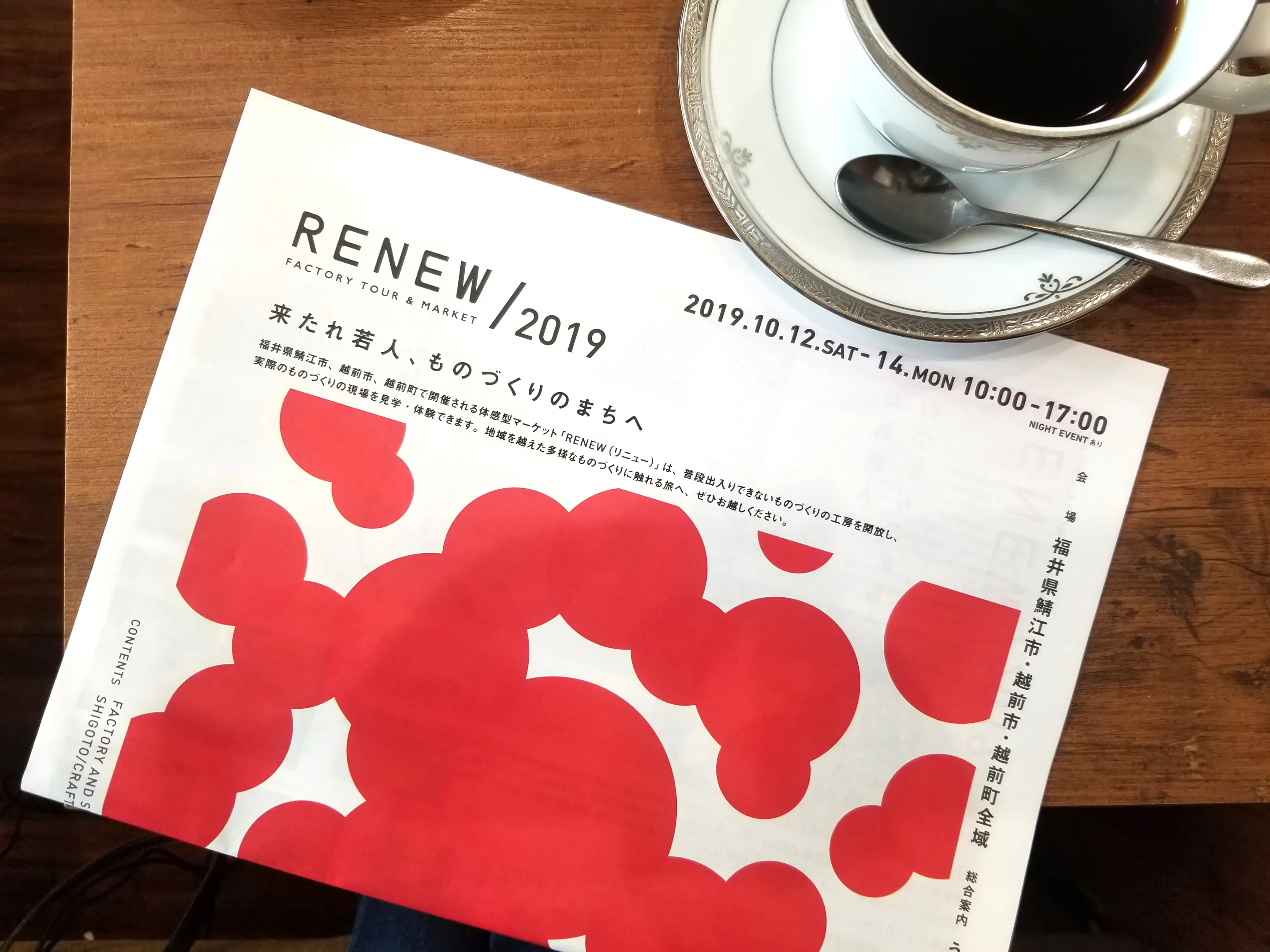 そこでまず、職人の技術継承と地域活性化の好事例として挙がっていた福井県鯖江市で毎年開催されている『RENEW』(2019年度:10月12日-14日開催)を訪れました。