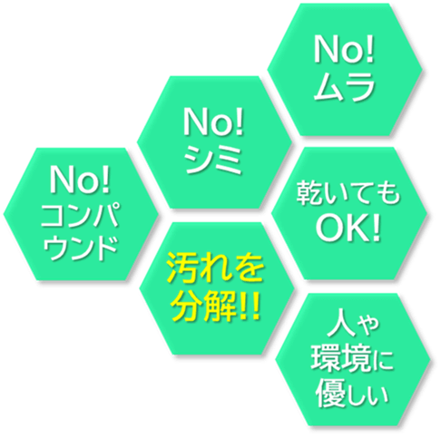 グリーンの成分はアルカリ系分離剤で、付着した油汚れや様々な汚れを分解し、本体から浮き上がらせます。