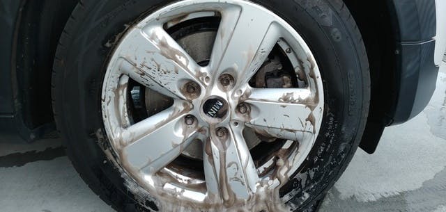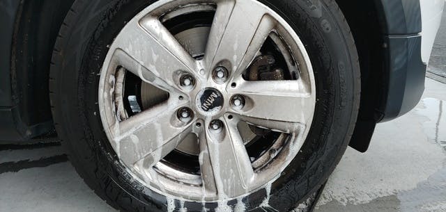 ホイール汚れは頑固な場合が多いので、ボディーよりも少し多めに吹きかけ、少し強めにゴシゴシと汚れを落としてください。