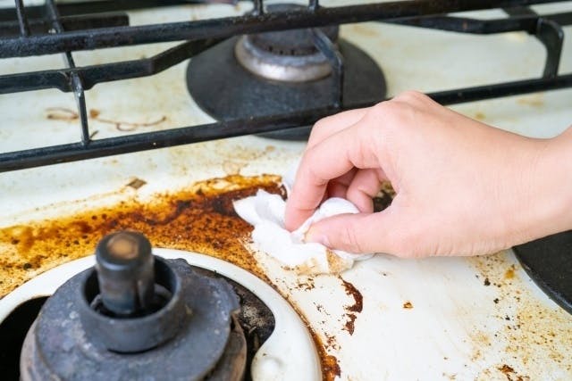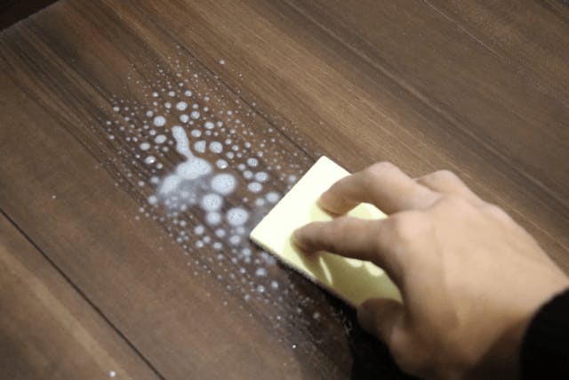 5分間放置し、濡れた雑巾やキッチンペーパーで汚れを取り除いてください。