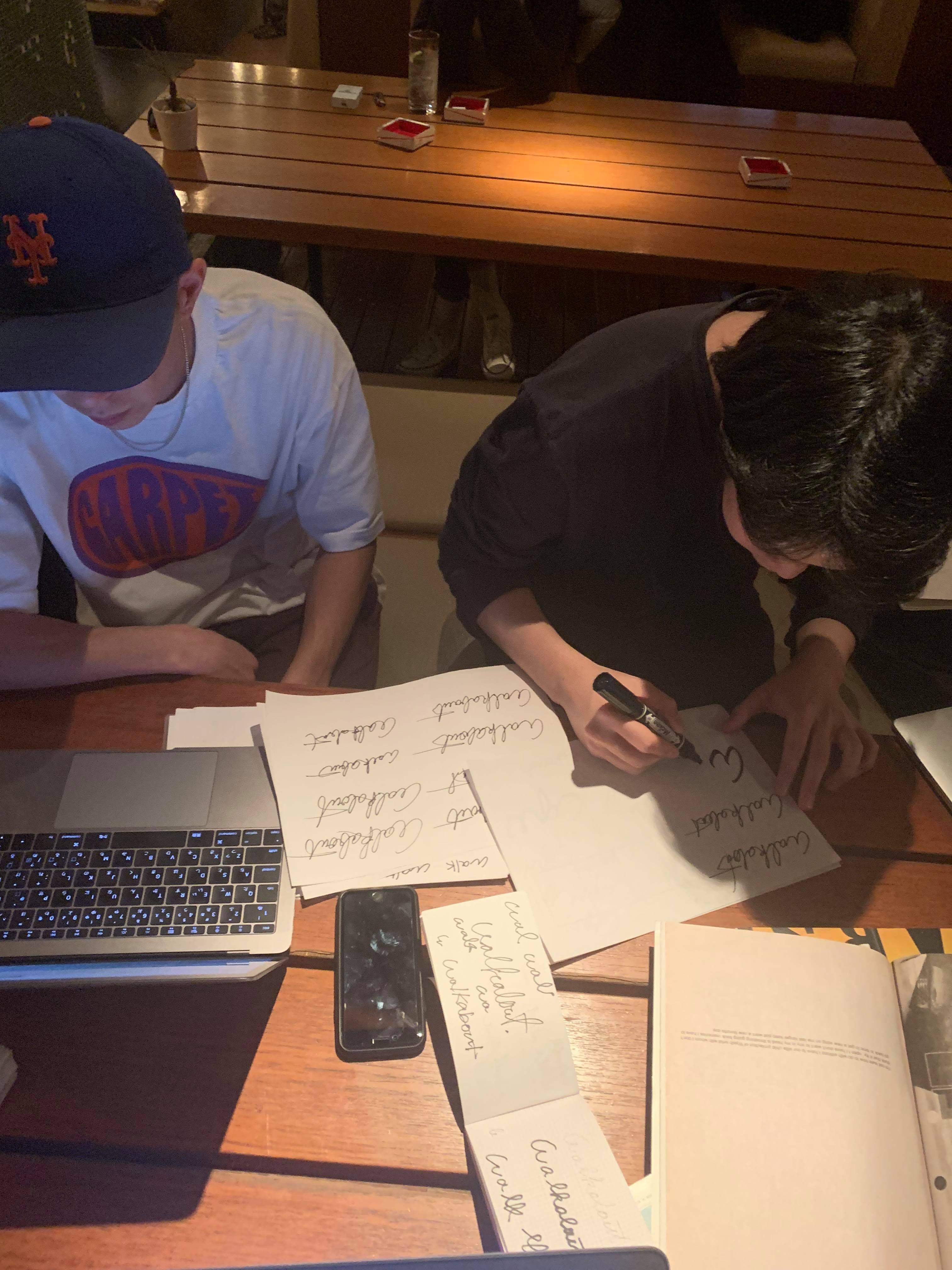 ▲タイトルが決まり、手書きで文字をテストしているところ。