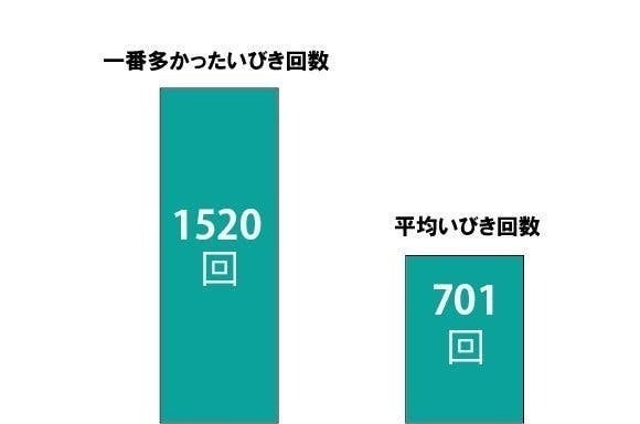 睡眠医療機関にて調査した普段だからいびきをかいていると言われている方を対象に1晩で起こる平均的ないびき回数を調査したところ、平均701回となりました。スノアサークルEMSパッドを利用して平均と比べてご自分がどれほどいびきをかいているか?をチェックするという楽しみ方も可能です。