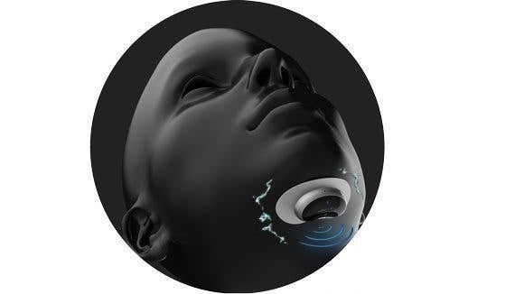 スノアサークルEMSパッドは、いびきの音を認識する「音認識」技術といびき時の喉の筋肉の振動など人体のの動きを正確に捉える「骨伝導」技術のダブルテクノロジーを採用。
