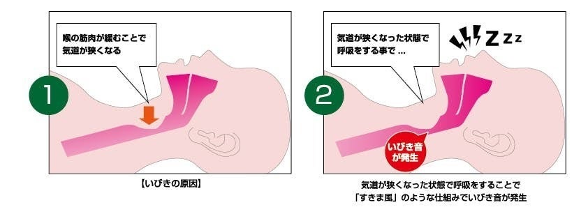 【気道が狭くなることで起きるいびき音】