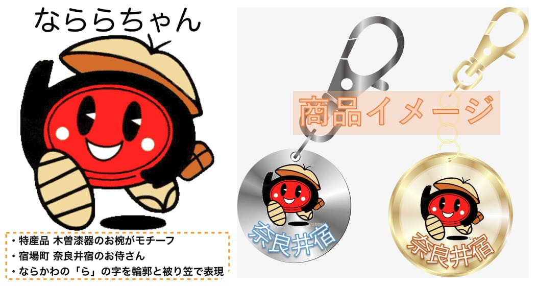 ・奈良井宿のマスコットキャラクター「なららちゃん」のキーホルダー:1口1,500円