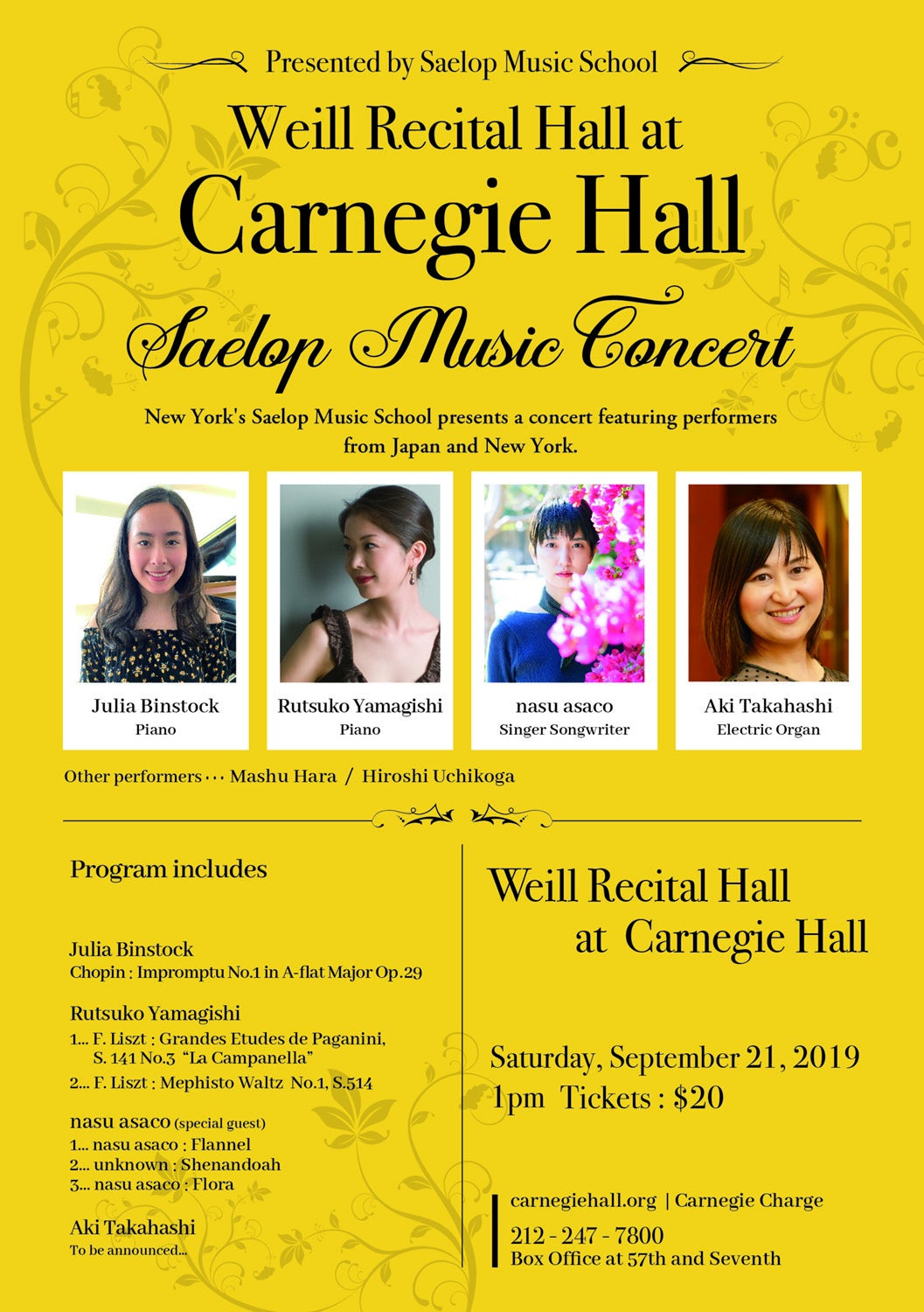 ~9月21日 カーネギーホール・ワイルリサイタルホールコンサートへの道~