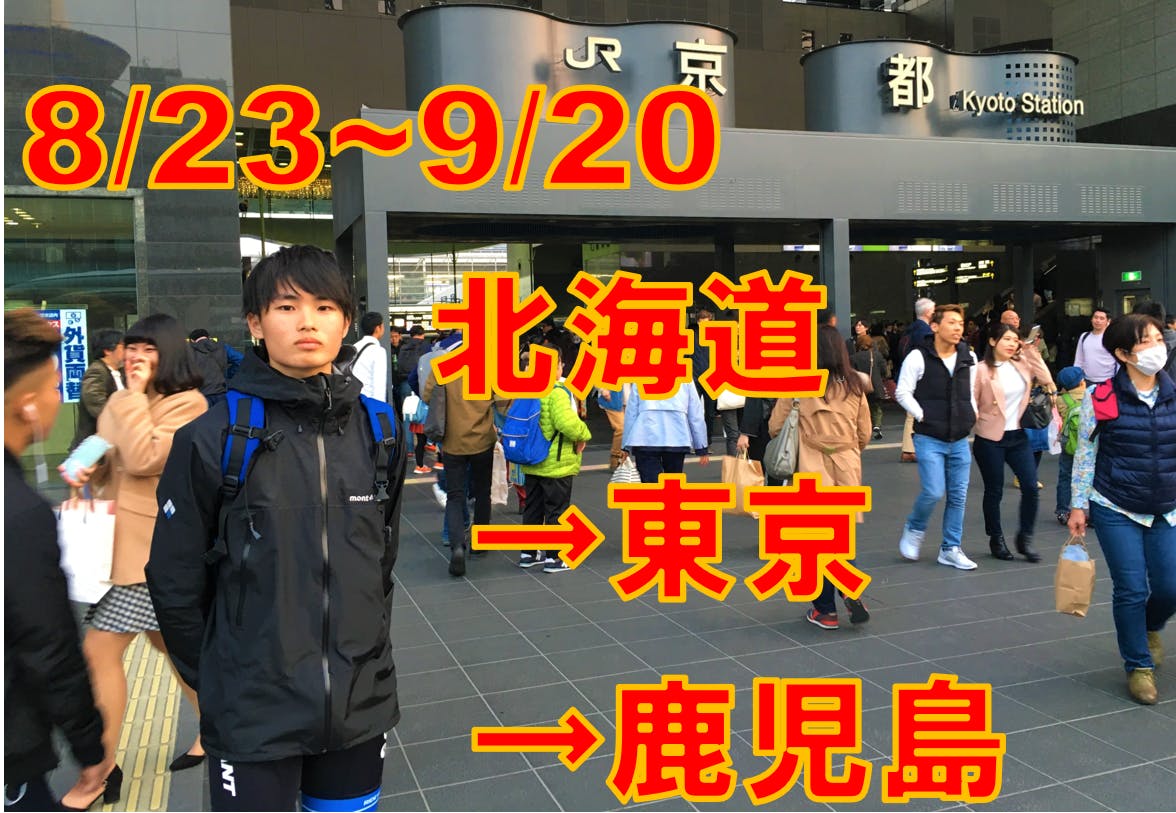 8月23日札幌出発→8月25日函館到着→9月1日東京到着→9月8日岡山到着→9月18日鹿児島到着