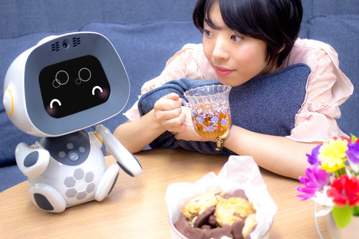 人工知能であらかじめ学習済みの挨拶、日常生活に即した会話だけではなく、たとえば悲しい時には、励ましの言葉をかけたり、一緒に悲しんだり、元気づけてくれたりします。