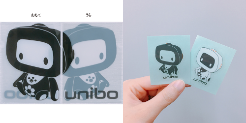 (右)ステッカーは、2色のユニボが2枚ずつ入ったユニボファン必須のアイテムです。
