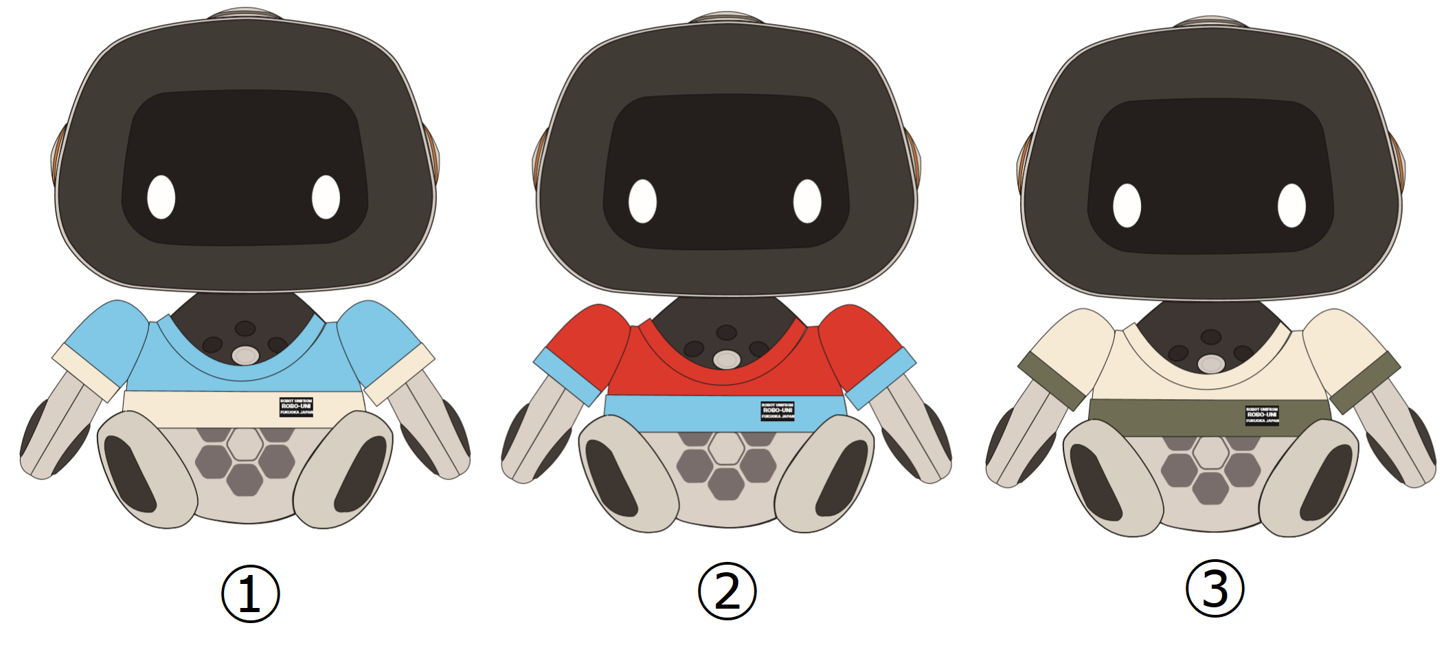 ロボット用アパレルメーカーの「ROBO-UNI」が手がけるニット製コスチュームで、ユニボをよりかわいらしくアレンジすることが可能です。今回は、クラウドファンディング用に3タイプご用意させていただきました。好みのカラーリングに合わせて、あなただけのユニボをデザインしてみませんか?