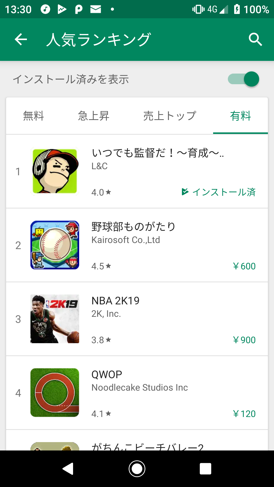 GooglePlay 3/7のランキング
