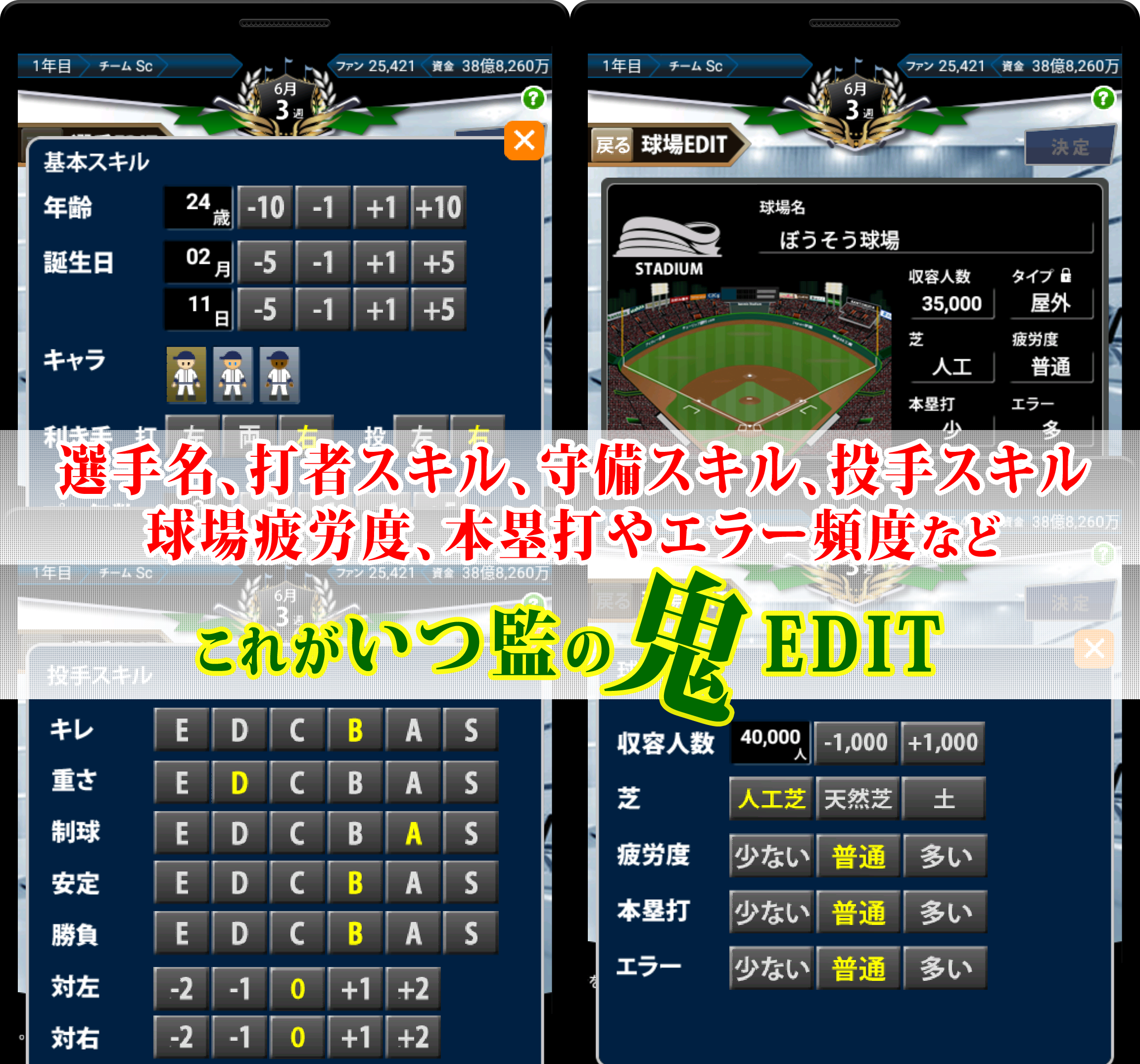 いつ監の特徴は、選手に指示を出すだけではなく、選手スキルをEDITできることです。