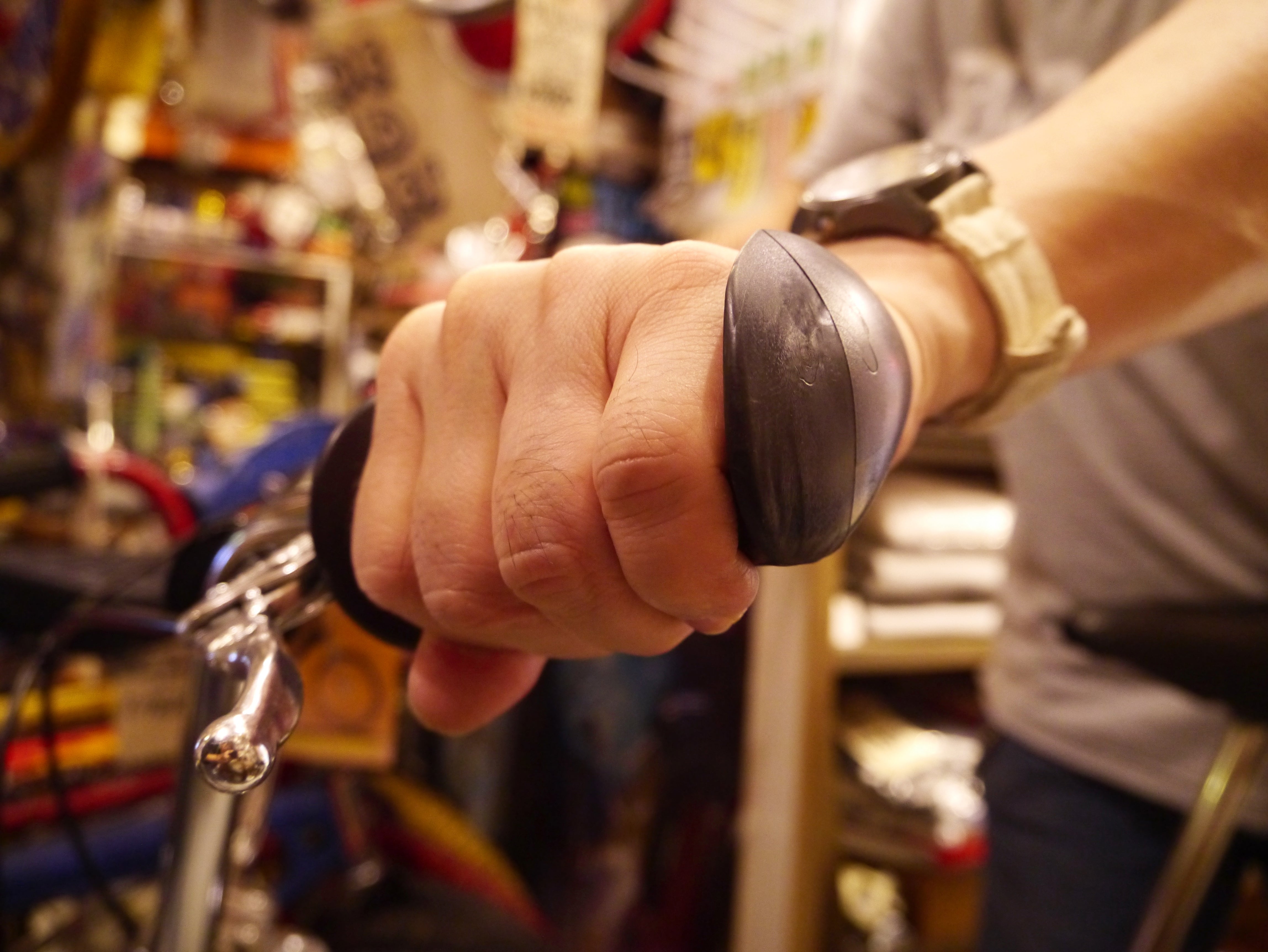 「コブラの顔にあたる部分、つまり端っこがぐいっと持ち上がってるのは、ハードな動きをしても手が外に落ちないように。実際に握ってみるとよくわかるんですが、このグリップ、すっごくホールド感がいいんですよ! これはちょっと試してみないとわからないから、ぜひオーダーしてほしい(笑)」