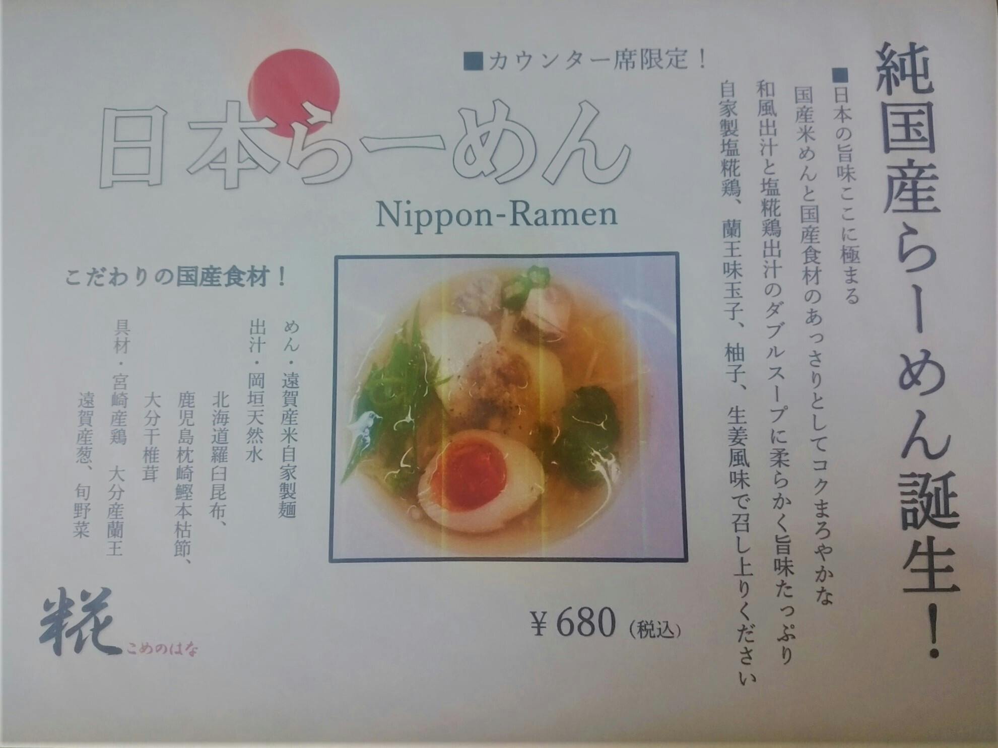 2019/12/03 20:00純国産らーめん誕生!遠賀屋 糀こめのはな店舗にて カウンター席限定近日販売です。らーめん食べたいけど、食後が重くて、スープが飲み干せなくて、など最近のラーメン業界では、あっさり魚介系のスープが主流になりつつあります。また輸入小麦粉とかん水、卵白などを使用した麺も安心と健康を求める方々や、小麦アレルギーの方々に不安を抱かせています。遠賀屋 糀こめのはな が開発しました、純国産食材の日本らーめんは、そういった方々にも安心して美味しく召し上がっていただけます。 もっと見る