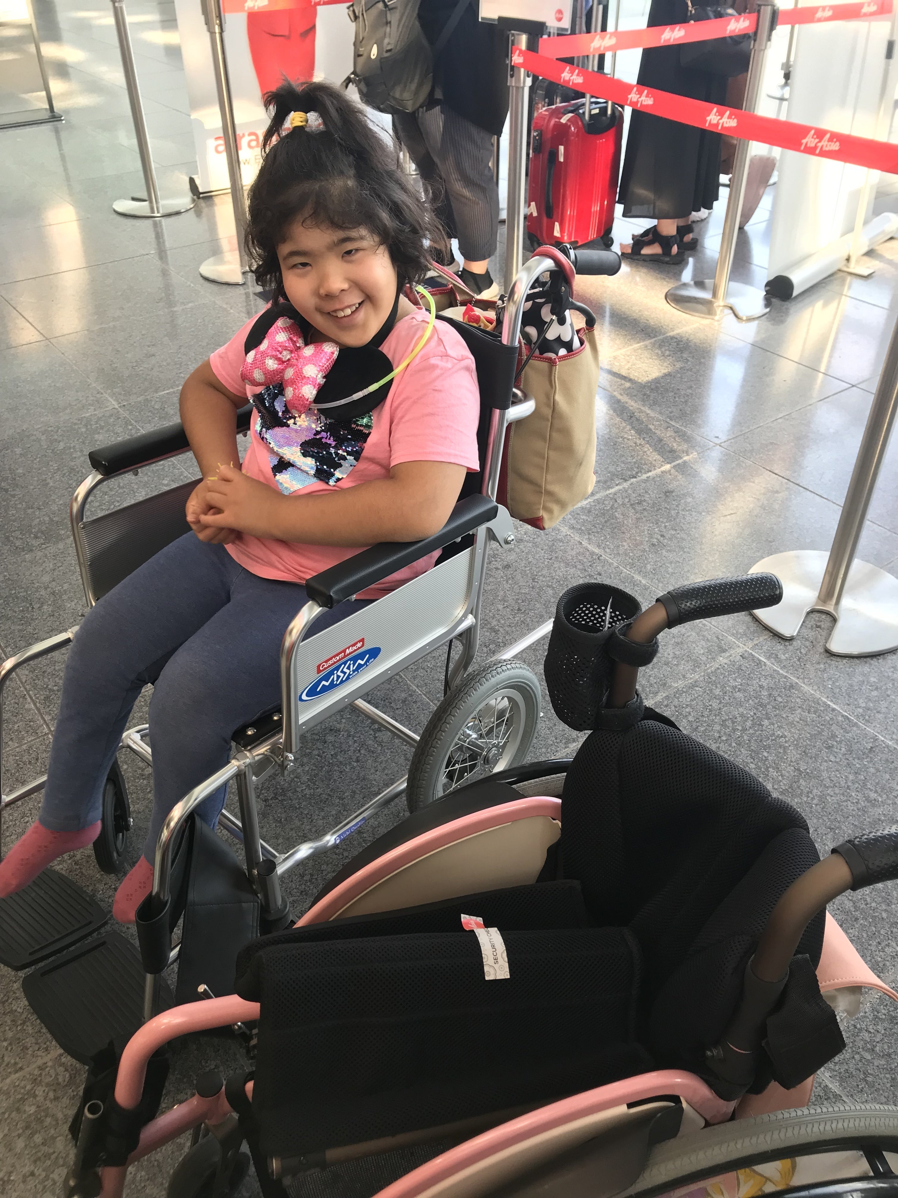 航空会社の車椅子に乗換え。自分で漕げないタイプだから母大変(爆)