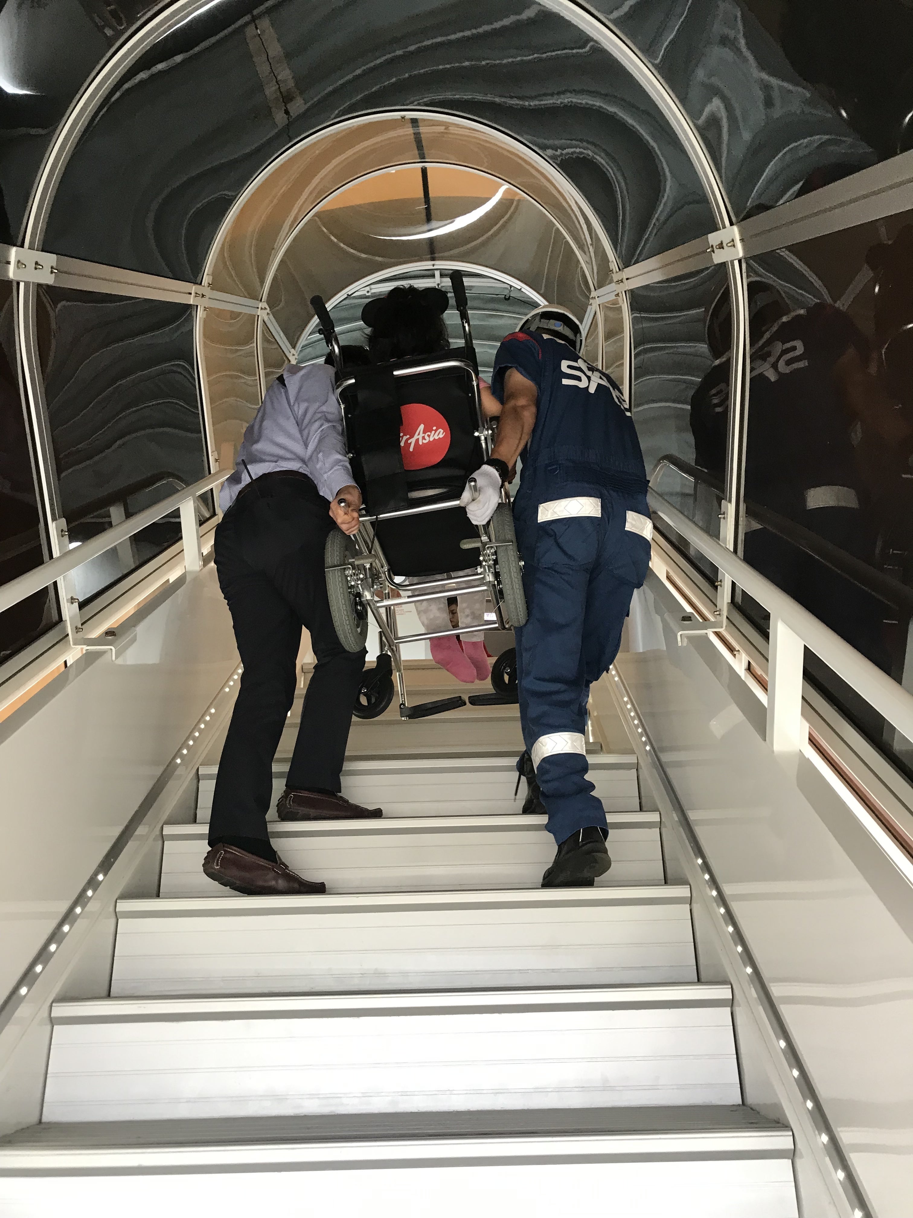 帰りの飛行機は地上から階段で昇タイプ(なんていうのだ??)