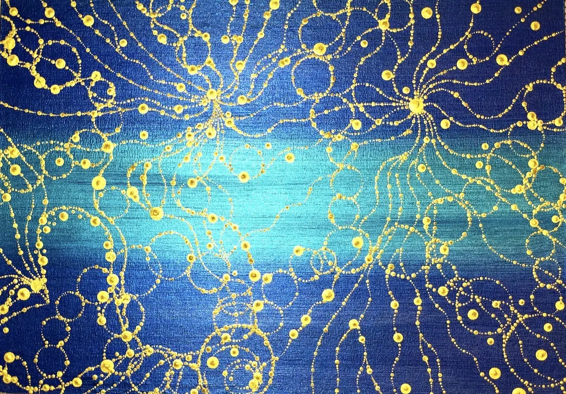 私は「ありがとうございます」と唱えながら、魂の点描画を描いている点描画家です。「ありがとうございます」と唱え始めたのは10年前の事でした。そこから10年程、唱え続けて今、517万回達成致しました。「ありがとうございます」の点を繋ぎ、絵と現実を感謝でくくるお仕事をしています。