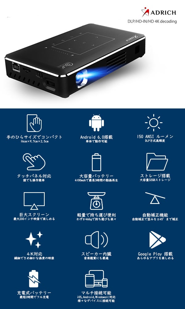 あらゆるシーンで遊び心が躍動する4K対応Android搭載小型プロジェクターが登場!!