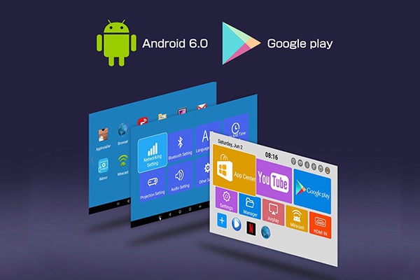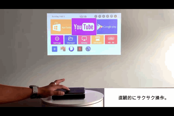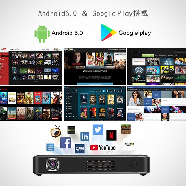 いつでもどこでも、お使いのプロジェクターで何百万ものAndroid アプリ、ゲーム、 音楽、映画、テレビ
