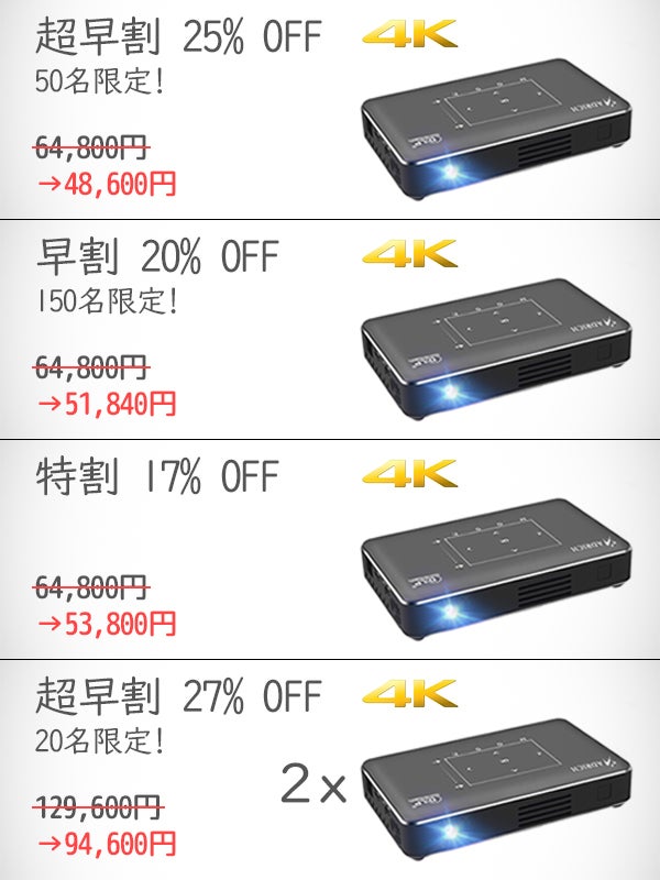 ・私たちは「IMK96 4K対応プロジェクター」を予定通りお届けできるよう迅速且つ丁寧に進めるよう最善の努力を尽くしますが、海外輸送中のトラブルや通関時のイレギュラー等の事情により止むを得ずお届けが遅れる場合があります。予めご了承ください。