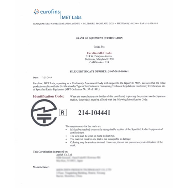 IMK96は総務省が登録外国適合性評価機関として認証している機関で既に検査を終えております。