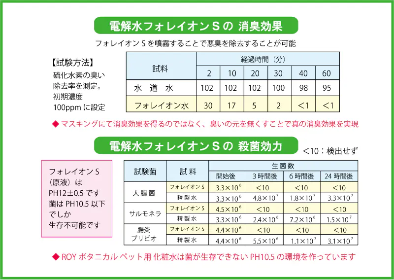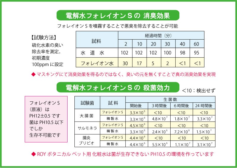 また、特殊電解水フォレイオンSには優れた殺菌効果や消臭効果があります。
