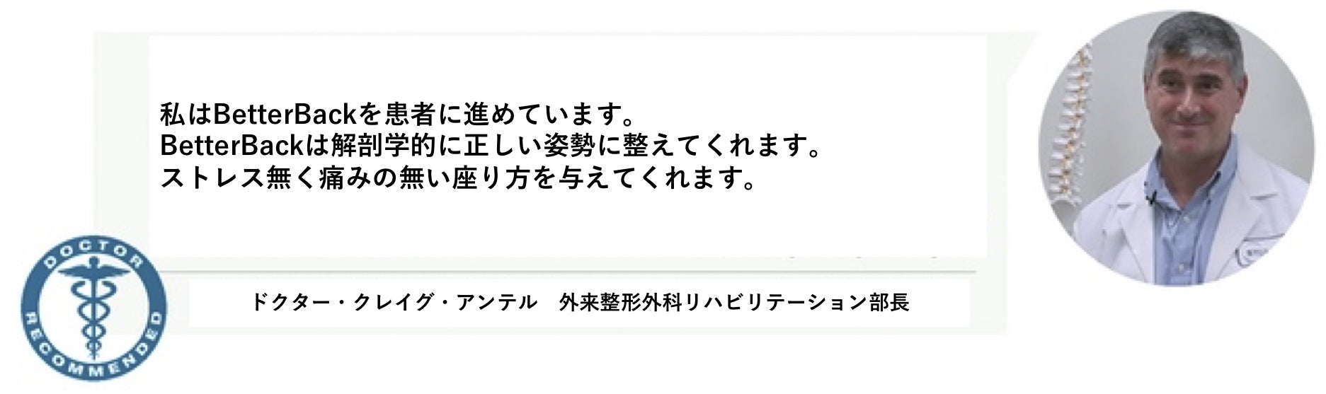 看護師、理学療法士、トレーナーも! ドクター・クレイグ・アンテル(奥さんと息子も)がベターバックを使っています。
