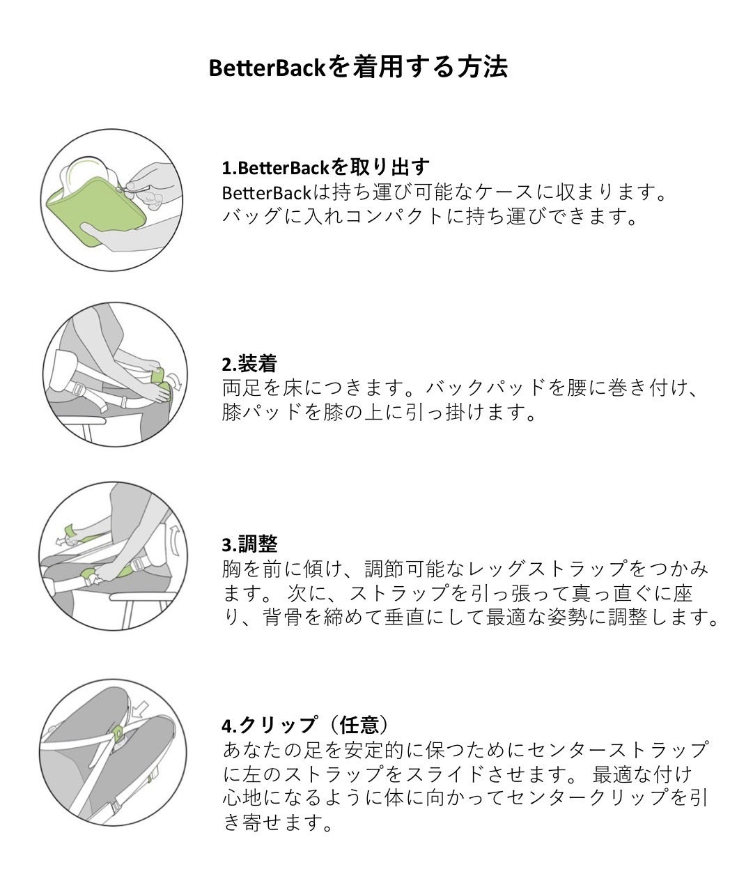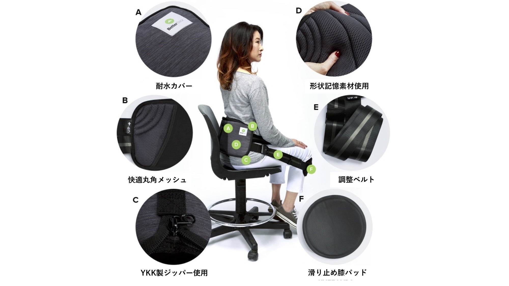 ベターバックは簡単に使用することができ、正しい姿勢で座ることをサポートします。