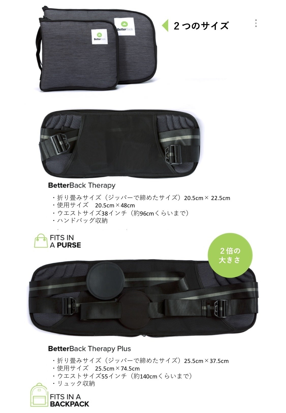 BetterBack Therapyは調節範囲が大きく、ご自分にぴったりのサイズに調節することが可能です。