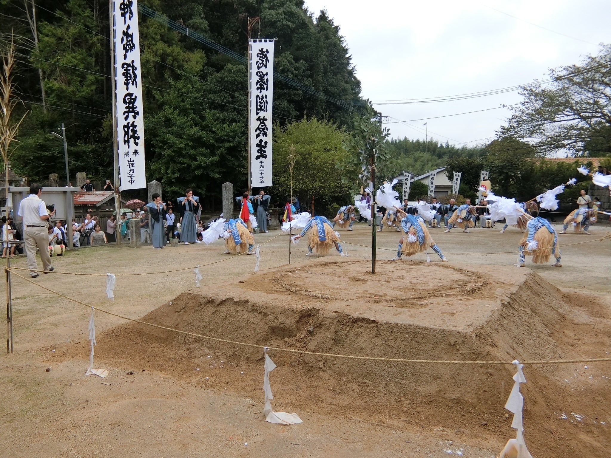 大分県の宇佐市などの旧豊前国周辺には、まだ多くの「楽」が残っていますが「山野の楽」は旧筑前国(現在の筑豊地区)に伝わった唯一の「楽」であり、祭りの多くの部分が昔の形式を保ったまま残っている貴重な祭りでもあります。