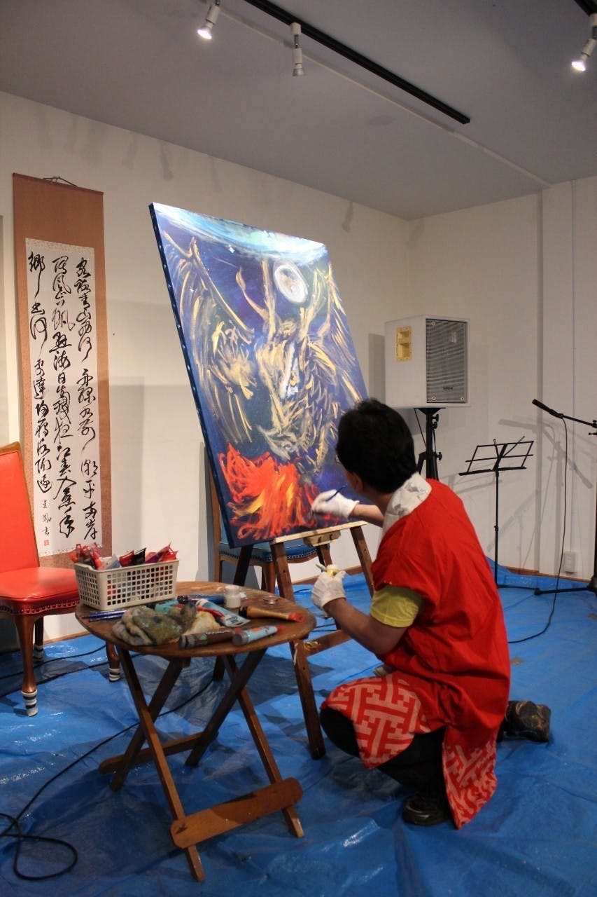 ご支援に感謝申し上げます(^人^)写真は、2019.7.14 TATSU LIVE PAINTING PERFORMANCE 「Wing Dragon! Save the earth!」より。邪悪なるものを焼き尽くす炎を吐く瞬間です!