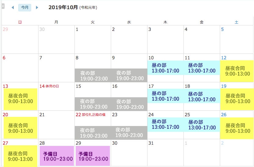 昼の部と夜の部を設けました。昼の部は木金、夜の部は火水。