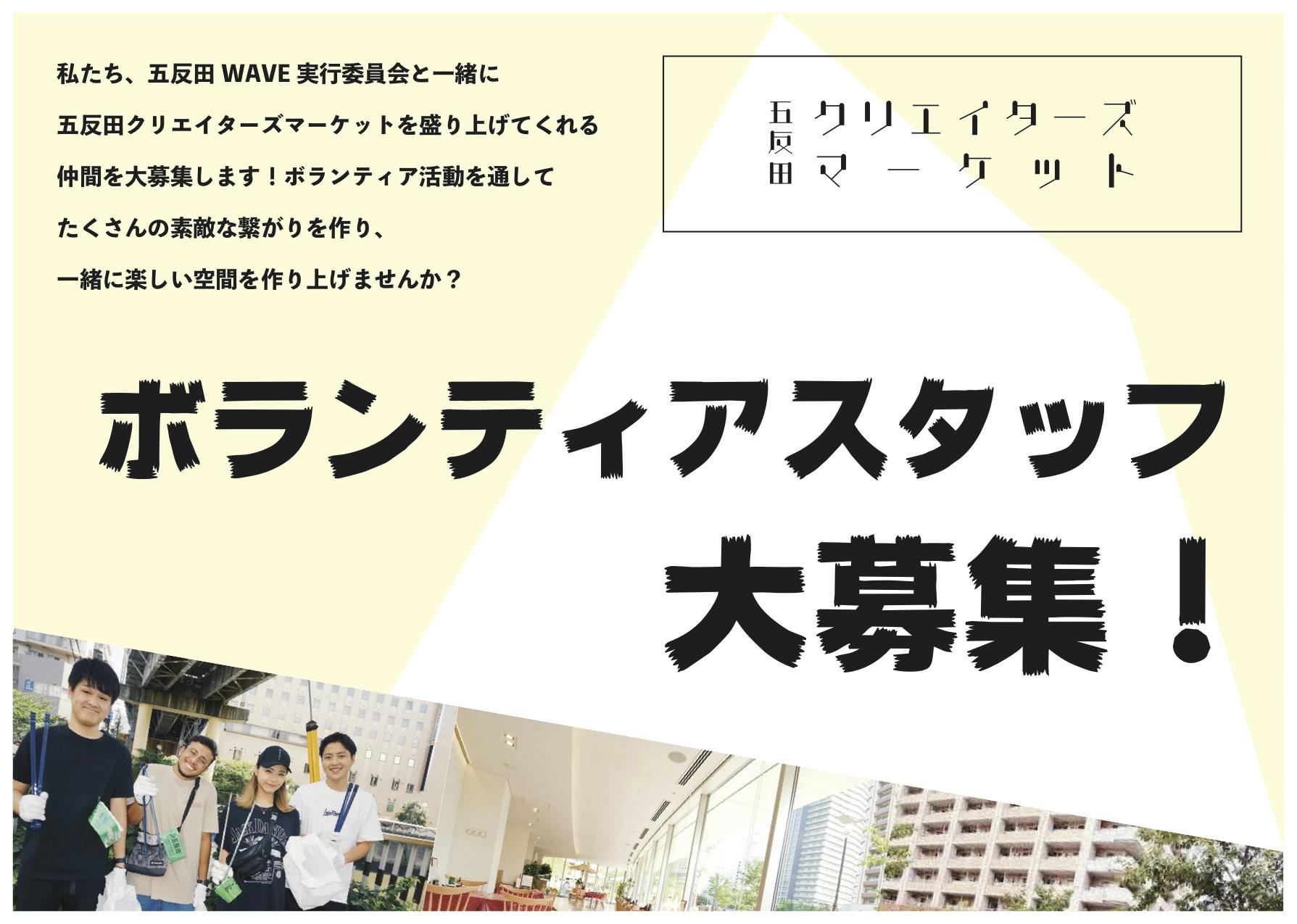 2019/08/09 13:24五反田クリエイターズマーケットでは、私たち、五反田WAVE実行委員会と一緒にイベントを盛り上げてくれる仲間、ボランティアスタッフを大募集します!!!ボランティア活動を通して日常では味わえない刺激や沢山の人との出会い、沢山の素敵な繋がりを作って一緒にハッピーな空間を創り上げませんか?ボランティア活動が初めての方やお一人での参加もお待ちしております!ぜひ、私たちと一緒に新しい発見と素敵な出会い溢れる1日を過ごしましょう!お申し込みはこちら募集内容① 運営スタッフ出展者及び来場者への対応、会場内巡回、SNSでの情報発信、イベントエリアのサポート② カメラ撮影スタッフ出展者/来場者の撮影③ ビデオ撮影スタッフ出展者/来場者へのインタビュー及び撮影活動日時2019年9月21日(土)運営スタッフ: 9:30~17:30(休憩時間含む)撮影スタッフ: 10:30~17:30(休憩時間含む)※当日の状況により活動時間が変更になる場合があります。活動場所さくらてらす五反田〒141-0022 東京都品川区東五反田2丁目9−18参加条件・活動日時に参加できる方。・人と接することが好きな方。▽ 撮影スタッフに限り、以下の項目に当てはまる方。・イベント撮影に興味のある方。・撮影機材を持参できる方。注意事項・応募多数の場合、ご参加をお断りすることがございます。ご了承ください。・ご都合により当日の参加予定に変更が生じた場合は必ずご連絡ください。・活動時間帯と活動内容は実行委員会で決定させていただきます。・交通費は自己負担にてお願いいたします。お申し込みはこちら もっと見る