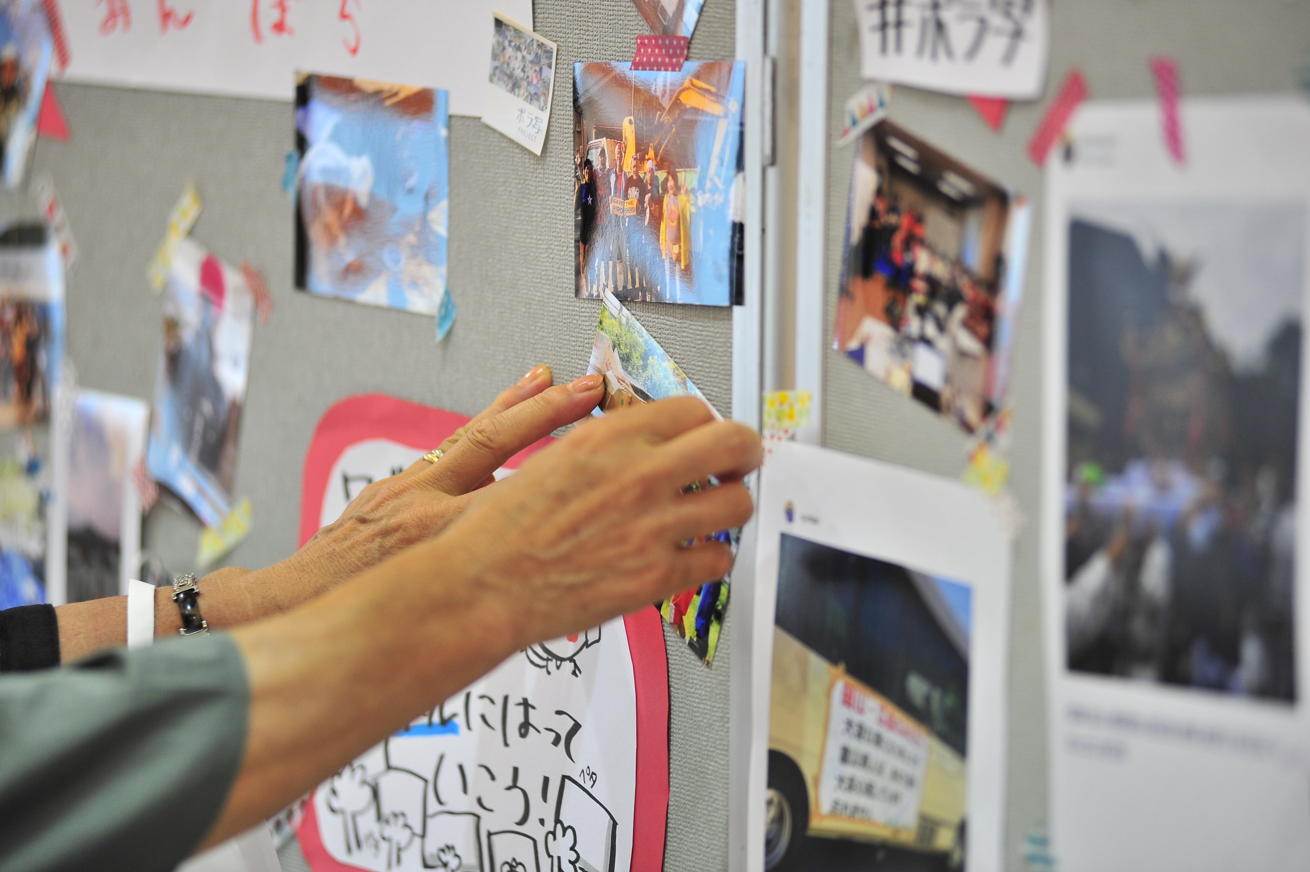 壁いっぱいになってきたので柱にも貼っていただくボラ写。