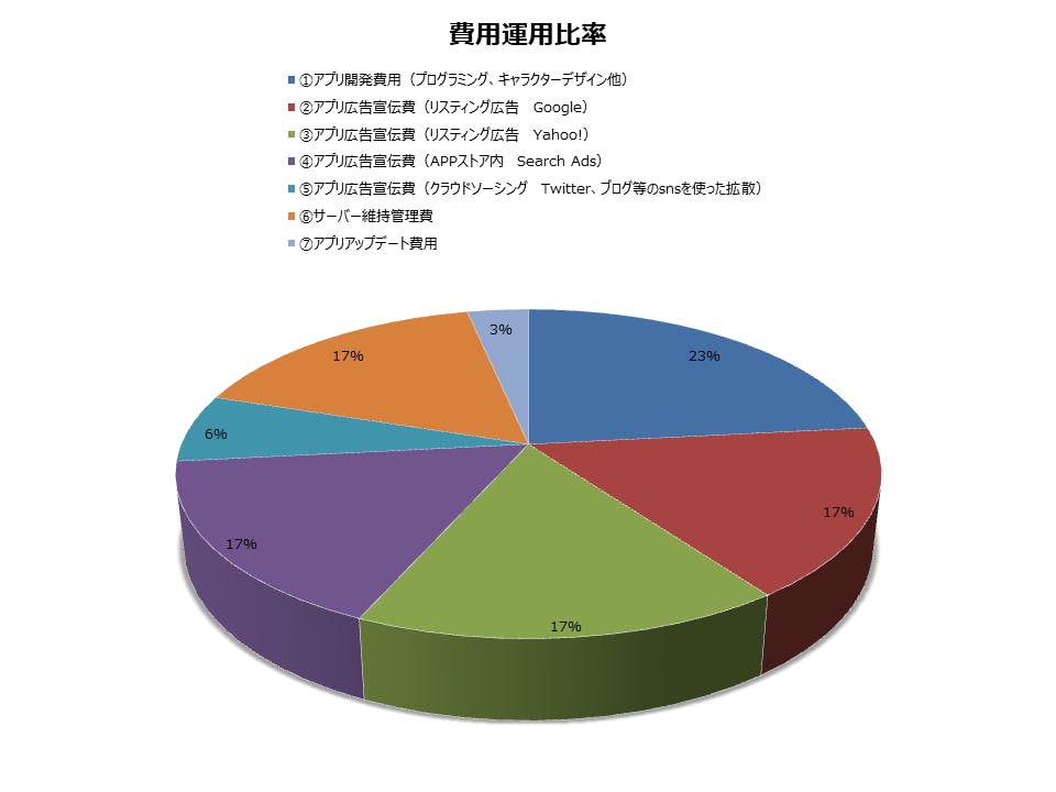 アプリの拡散の為の広告宣伝に費用の半分以上を投入していきます。