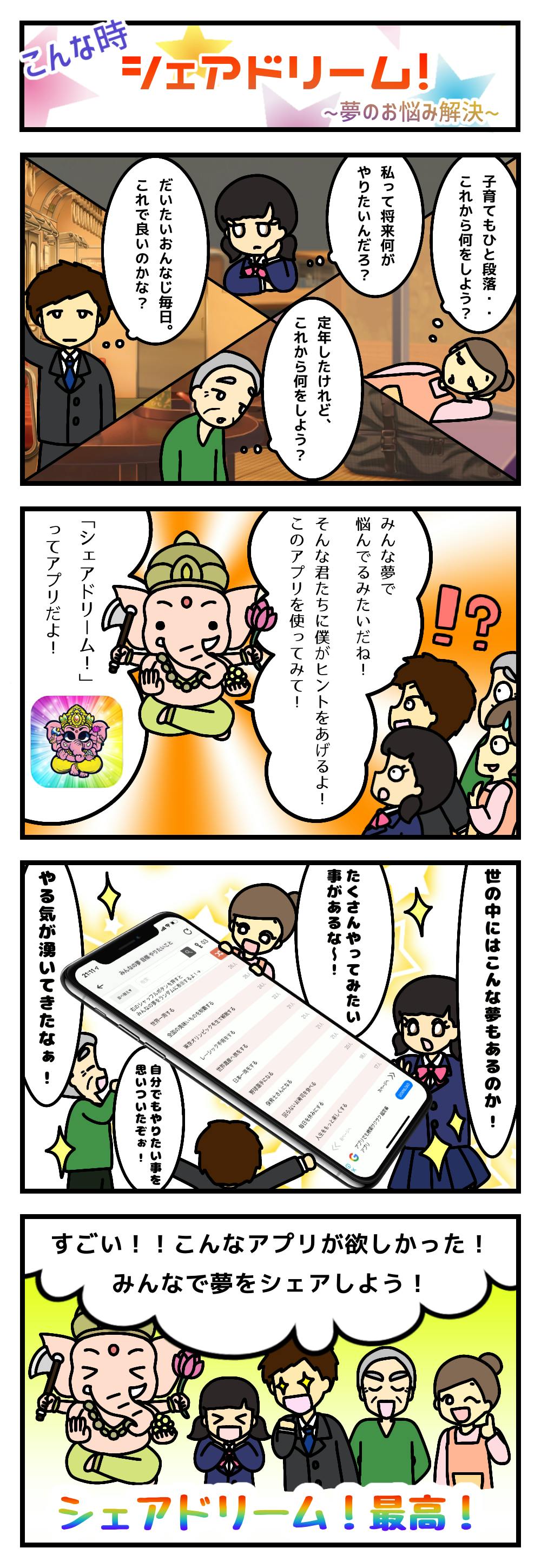 といった、悩みを持つ人々に「シェアドリーム!」アプリを使って貰う事で