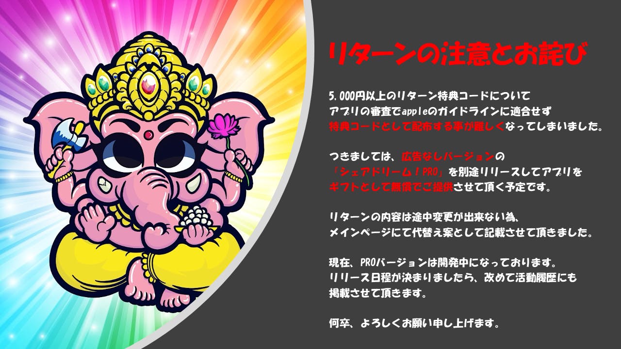 「シェアドリーム!」は完全無料アプリとして、Storeにリリースさせて頂きます。