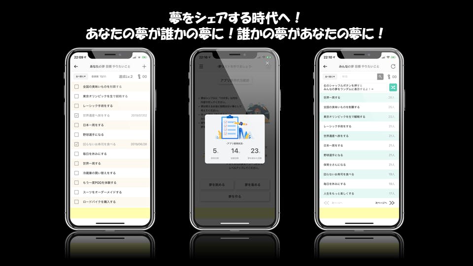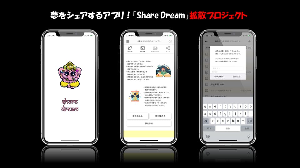 長くなりましたが、これがきっかけて、夢をシェアするアプリ