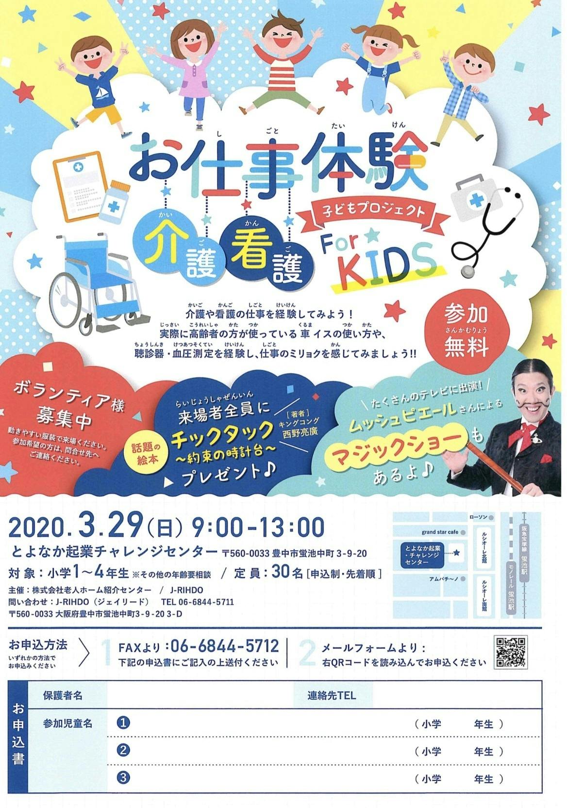 この度「お仕事体験 介護 看護 For kids」に変更致しました。