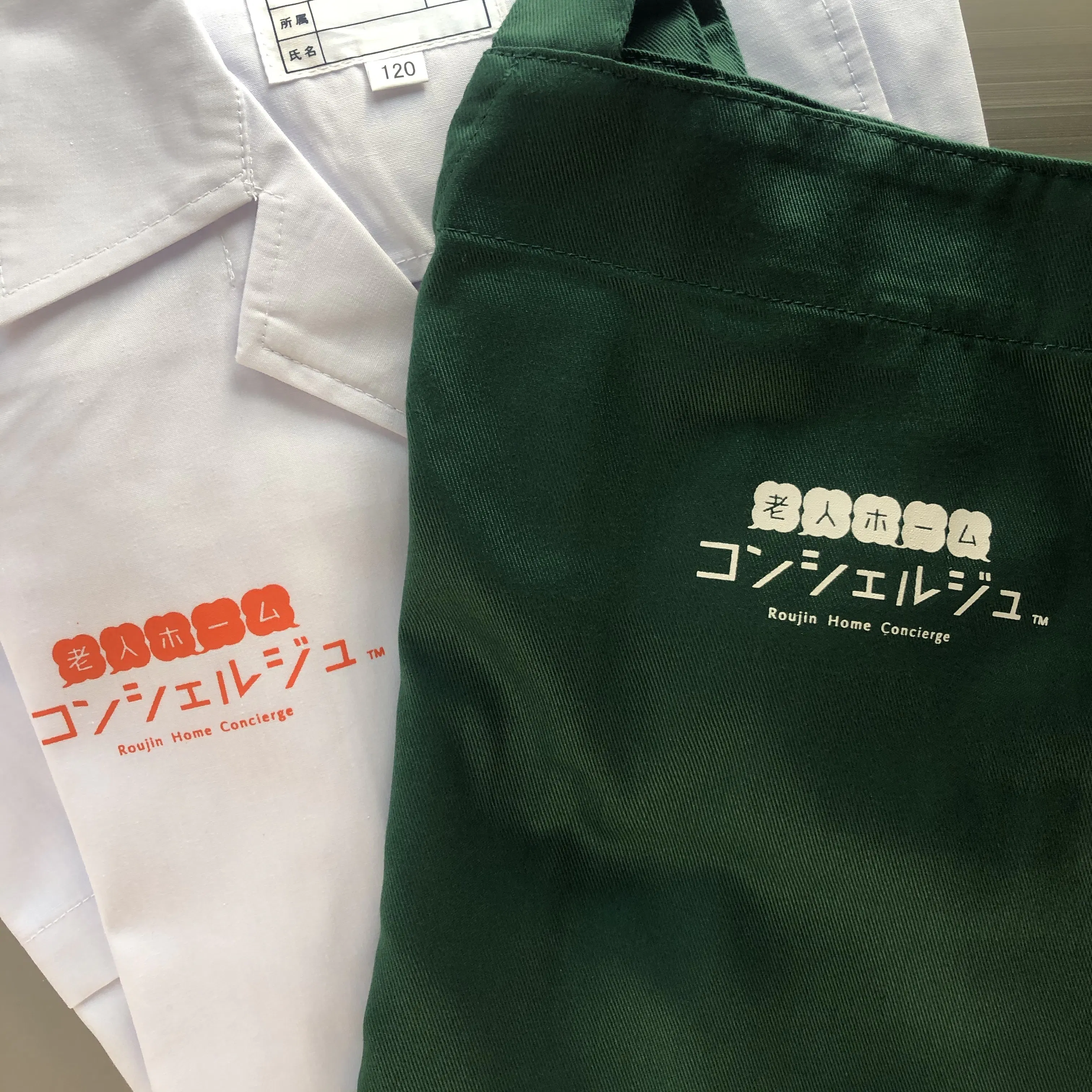 衣装には、老人ホームコンシェルジュのロゴをプリントしました。