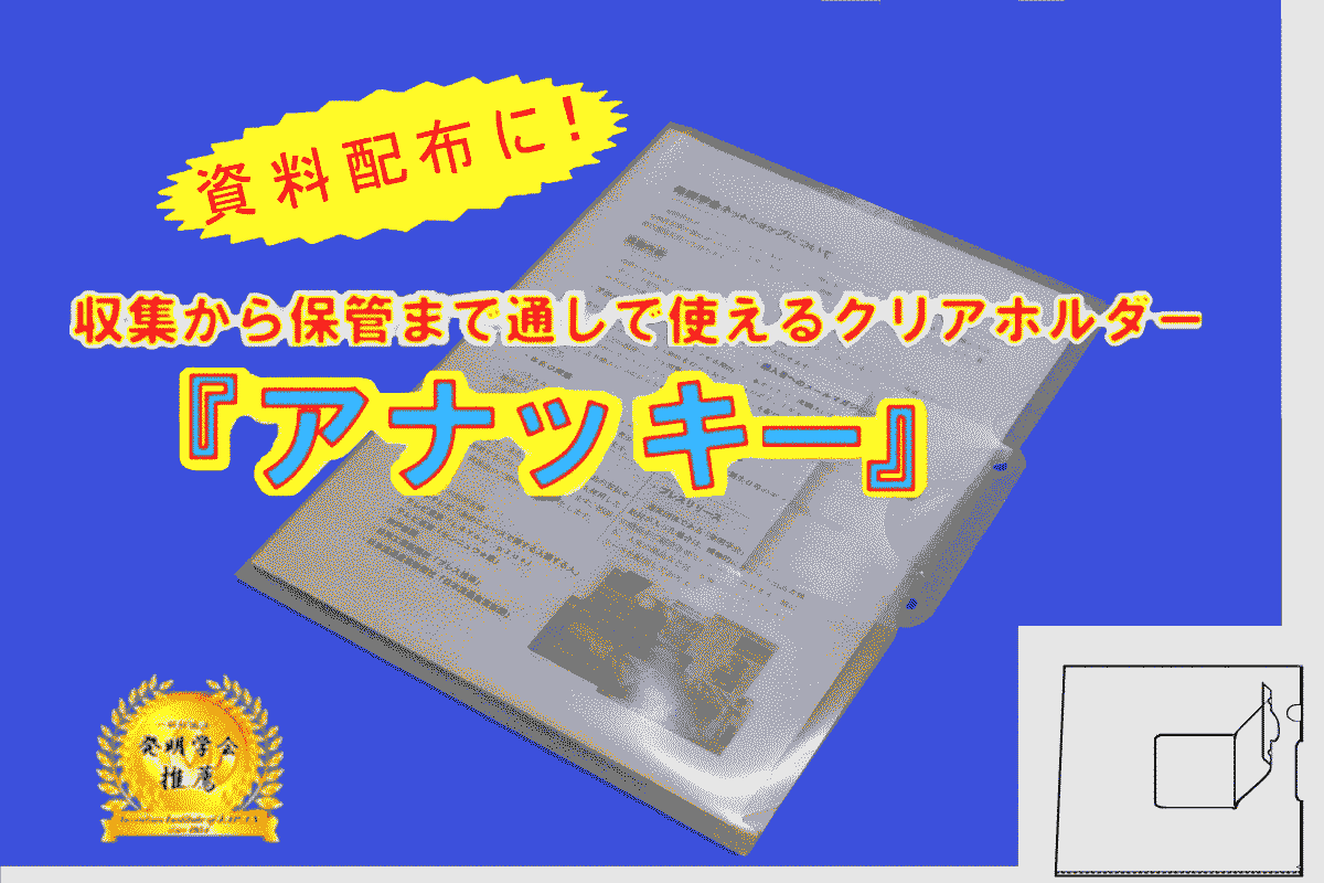 お陰様を持ちまして56人もの方々からご支援を頂き、当初目標の279%で募集終了することができました。ご支援いただいた皆様に、心より御礼申し上げます。●リターンの発送 1,000円コース,8/12までの2,000円コース,及び、3,000円コースにつきまして、今月より順次、リターンを発送させていただきます。(受領印のいらない「クリックポスト」で発送させていただく予定です) 新2,000円コースにつきましては、もう少々お待ちくださいませ。●今後の「アナッキー」供給について(アナッキー販売サイトのご案内) 12月から、以下の各サイトでネット販売させていただく予定です。 ・発明学会ネットショップ:アナッキー(カラフル)( https://store.shopping.yahoo.co.jp/hatsumei-net/ko-36240-anakkii.html ) ・Souriresネットショップ:アナッキー(無着色)( https://sourires.base.ec/ ) いずれのアナッキーも、新2,000円コースと同様、切断線を少しミシン目状に改良したものになります。●情報拡散のお願い クリアホルダーをご利用の方に、「アナッキー」を拡散していただけますと幸甚です。今後とも「アナッキー」をよろしくお願い申し上げます。---------------------------------------------------------------資料配布から整理・保管まで通しで使える2wayクリアホルダー。 「アナッキー」by WⓐM