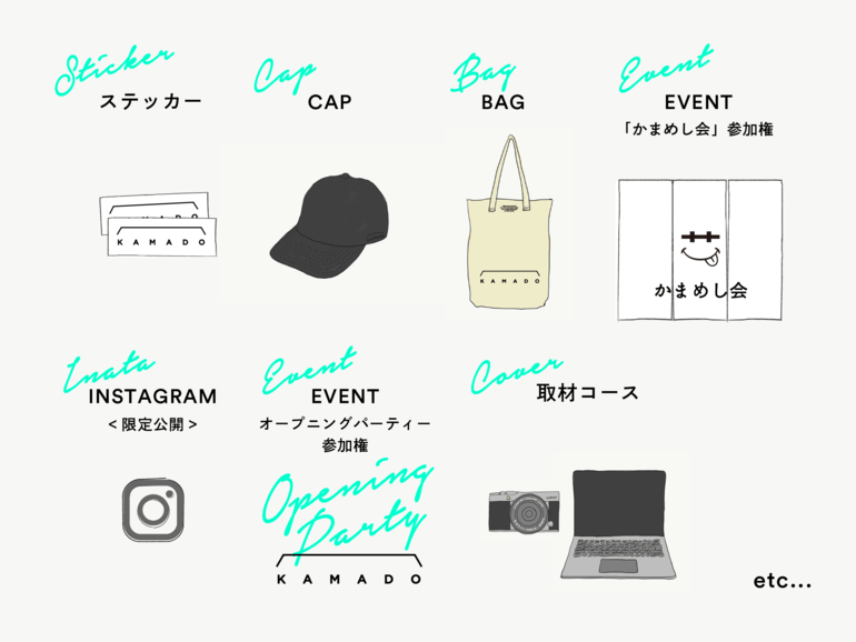 ・KAMADOのコミュニティーイベント「かまめし会」の参加権・・・「かまめし会」の参加権1回券・場所は都内予定。