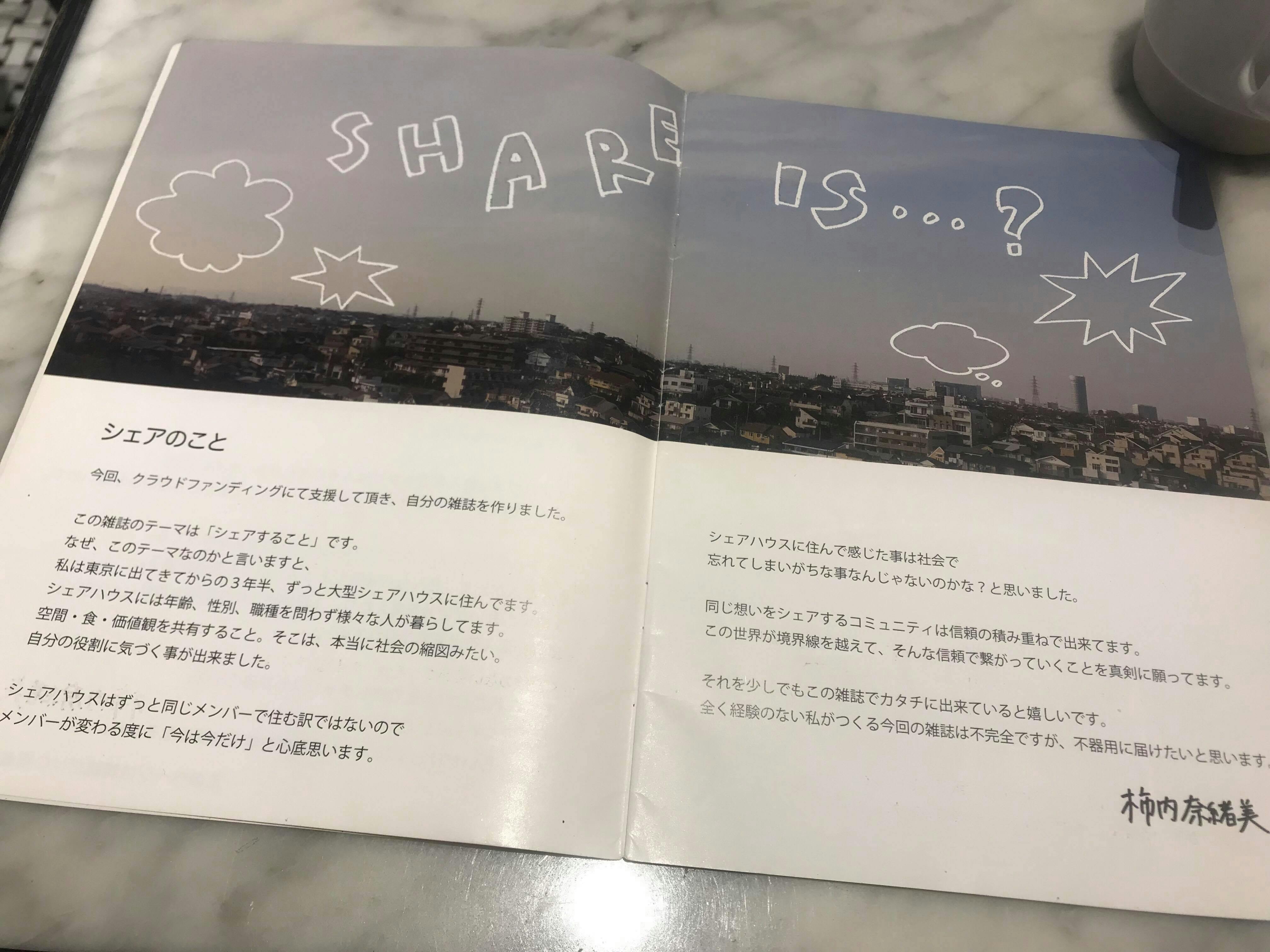 この雑誌のテーマは「シェアすること」です。