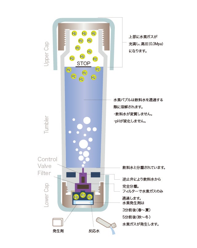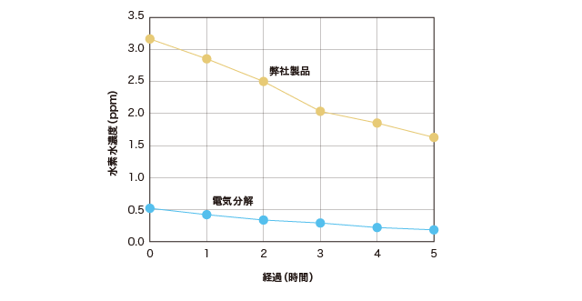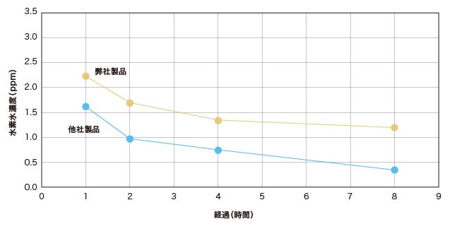 ただ高濃度の水素水を生成するだけではなく、独自の技術により高濃度の水素を長時間キープすることも可能としました。