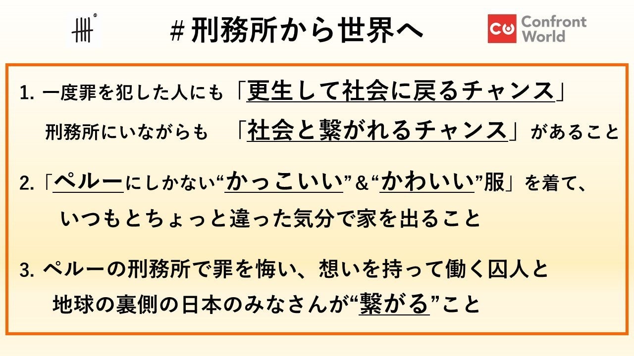 もし、その新しい服を着ることで「ペルーの囚人の熱い想い」の実現をサポートできたら、と。